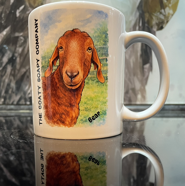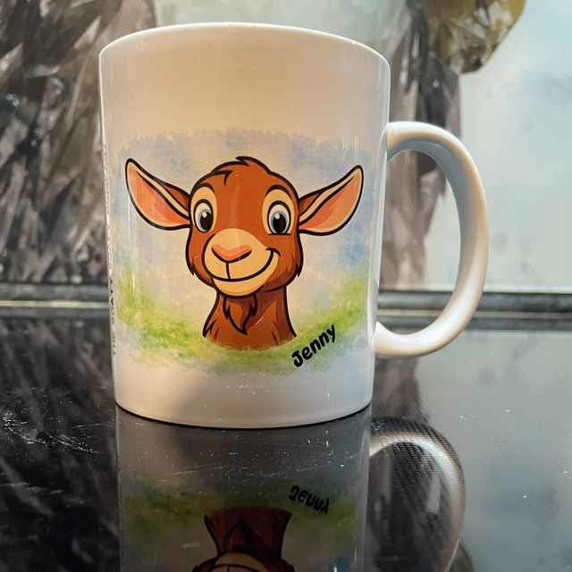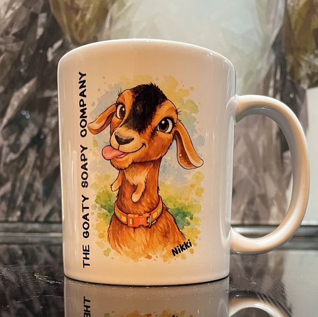 Start your day with a smile and a sip from one of our adorable Goaty Mugs. Each mug features a charming goat design created from real photographs of our very own goats, lovingly taken and designed by us. That means every mug is truly personal, unique, and full of character β€” just like the goats themselves!