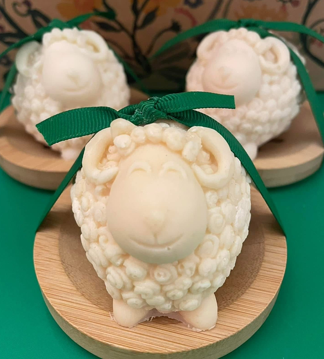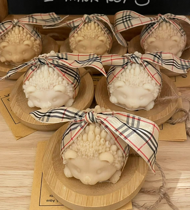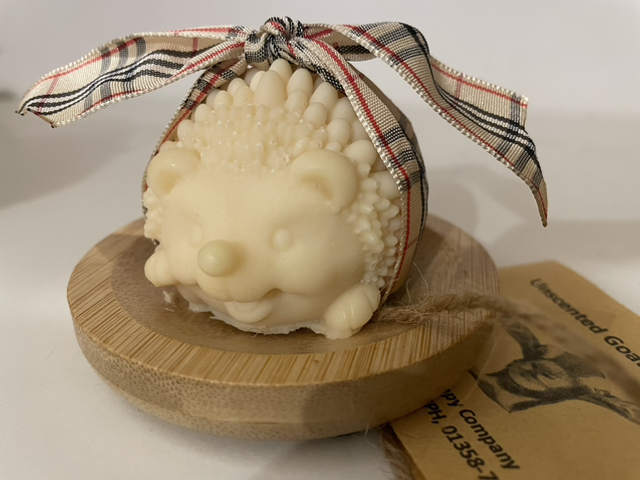 These beautiful goat milk sheep & hedgehogs soaps are displayed on a bamboo soap dish & make a wonderful unique gift.